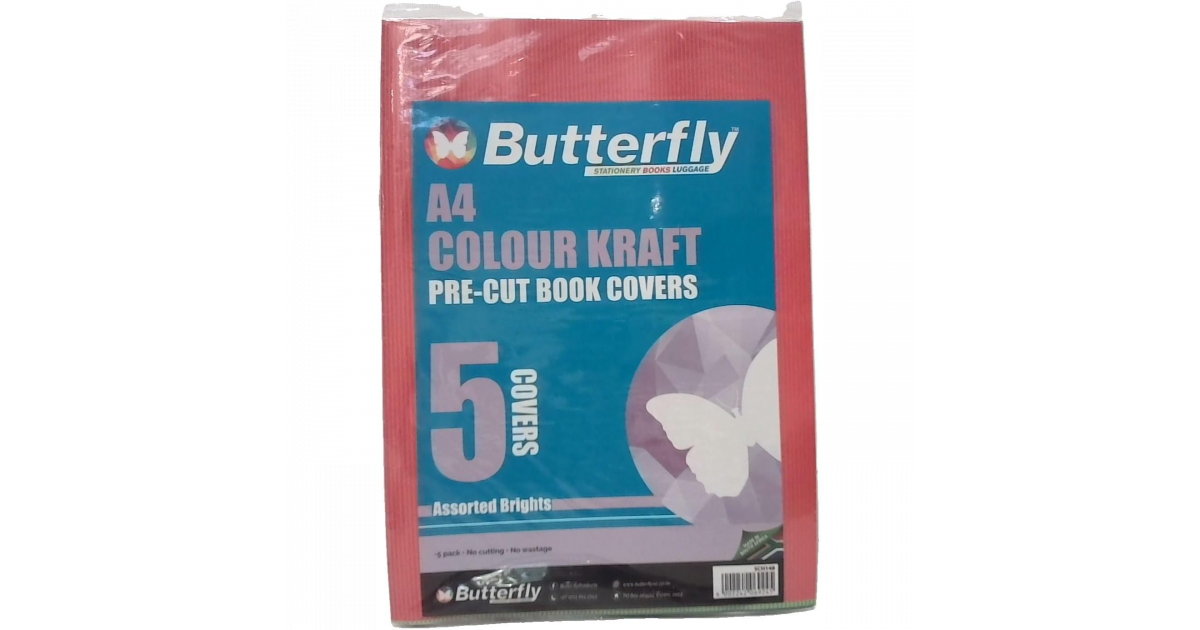 Butterfly BOOKCOVER A4 Colour Kraft Pre-Cut Pk5 (SCH148)